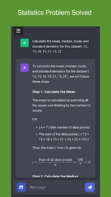 Ovaj sveobuhvatni alat podržava širok spektar statističkih funkcija ključnih za svaku analizu. Bilo da su vam potrebne mjere središnje tendencije poput aritmetičke sredine, medijana i modula, ili pak složeniji izračuni poput standardne devijacije, varijance, korelacije, vjerojatnosnih distribucija, testiranja hipoteza ili regresijske analize, AI Statistics Solver točno ispunjava sve vaše zahtjeve. Njegova pouzdanost i preciznost u izračunima osiguravaju da su rezultati uvijek točni, čineći ga nezaobilaznim partnerom za studente, istraživače i analitičare koji cijene integritet podataka.