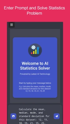 AI Statistics Solver: Vaš inteligentni pomoćnik za brzo i točno rješavanje statističkih problema. Pokreće ga AI, nudi instant rješenja za studente, profesionalce i istraživače. Savršen za akademske zadatke, poslovne analize i istraživačke projekte.