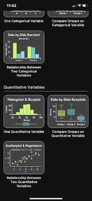 Art of Stat: Explore Data je moderni statistički kalkulator za profesore i studente. Istražite kategoričke i kvantitativne podatke. Izračunajte sumarne statistike, kontingencijske tablice i korelacijske koeficijente. Generirajte stupčaste i tortne dijagrame, histograme, kutijaste dijagrame, točkaste dijagrame i interaktivne raspršene dijagrame. Uključeni su unaprijed učitani primjeri.