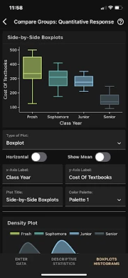 Art of Stat: Explore Data također omogućuje usporedbu grupa na kvantitativnoj varijabli korištenjem usporednih dijagrama okvira, složenih histograma ili dijagrama gustoće. Za dublju analizu odnosa između dvije kvantitativne varijable, dostupni su interaktivni dijagrami raspršenja s regresijskim linijama, izračunima korelacije te parametrima i predviđanjima linearne regresije, uz plotove sirovih i studentiziranih reziduala. Fleksibilnost unosa podataka je ključna: aplikacija dolazi s brojnim unaprijed učitanim primjerima, omogućuje vam unos vlastitih podataka ili uvoz CSV datoteka iz vašeg cloud računa. Ugrađeni Data Editor pruža vam mogućnost stvaranja i uređivanja skupova podataka, čineći Art of Stat: Explore Data kompletnim rješenjem za sve vaše analitičke potrebe.