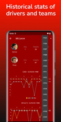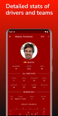 Budite uvijek u toku s najnovijim zbivanjima zahvaljujući ažuriranom kalendaru Velikih nagrada za tekuće prvenstvo. Pratite svaki detalj uz iscrpne rezultate svake utrke, pružajući vam dubok uvid u plasmane i događanja na stazi. Istražite opsežne povijesne podatke o vozačima i konstruktorima, analizirajući njihove karijere i razvoj timova. Uočite trendove performansi kroz godine i steknite potpunu sliku o evoluciji sporta.