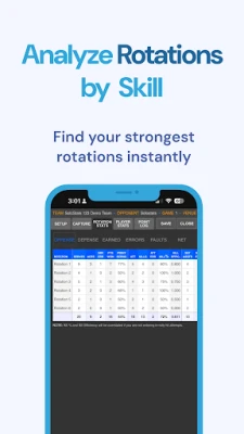S SoloStats123, uživo pratite dinamiku svake izmjene, precizno bilježeći servise, dodavanja i rotacije kako se utakmica odvija. Imate trenutačan pristup ključnim podacima poput učinkovitosti napada, uspješnosti servisa, preciznosti primanja i postotka osvojenih poena nakon servisa protivnika. Detaljno prikupljajte brojeve asova, grešaka na servisu, ocjene primanja (0-3), realiziranih napada, pokušaja, blokova i obrana. Automatsko bodovanje i praćenje rotacija omogućuju vam da ostanete usredotočeni na strategiju, dok aplikacija pedantno obrađuje podatke. Dodatno, SoloStats123 nudi neograničeno praćenje timova i utakmica, dostupno potpuno besplatno.