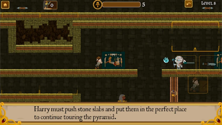 Put do istine nije lak. Svaki korak dublje u piramidu donosi nove izazove. Suočit ćete se s podmuklim zamkama, smrtonosnim jamama, otrovnim škorpionima i zmijama, a najviše od svega – probuđenim mumijama koje čuvaju vječni mir svog gospodara. Da biste napredovali, morat ćete aktivirati drevne mehanizme, gurati kamene blokove i rješavati složene zagonetke koje su stoljećima zapečatile put. Za obranu, oslonit ćete se na Harryjevu vještinu s nožem ili pronaći snažnu sačmaricu, pažljivo čuvajući svaki metak dok istražujete nepregledne hodnike.